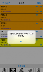 取引先の会社への電話回数をグラフ化して表示し、一目で営業活動の状況を確認することができます。 - 機能3.しばらく電話をしていない取引先を教えてくれる